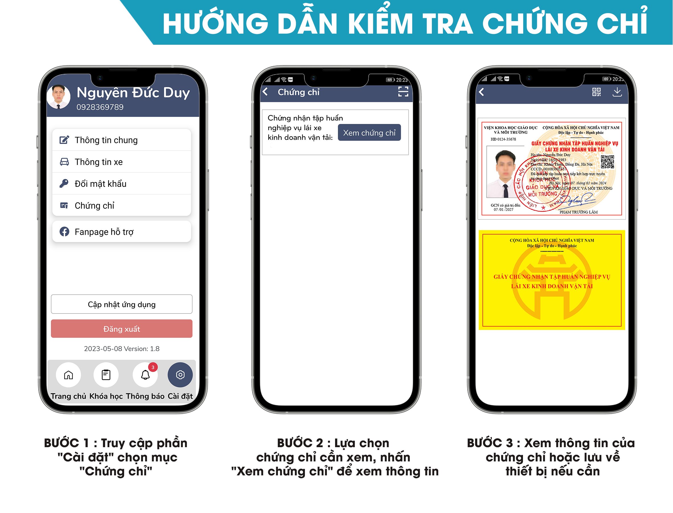 Bước 2: Lựa chọn chứng chỉ cần xem, nhấn “xem chứng chỉ” để xem thông tin